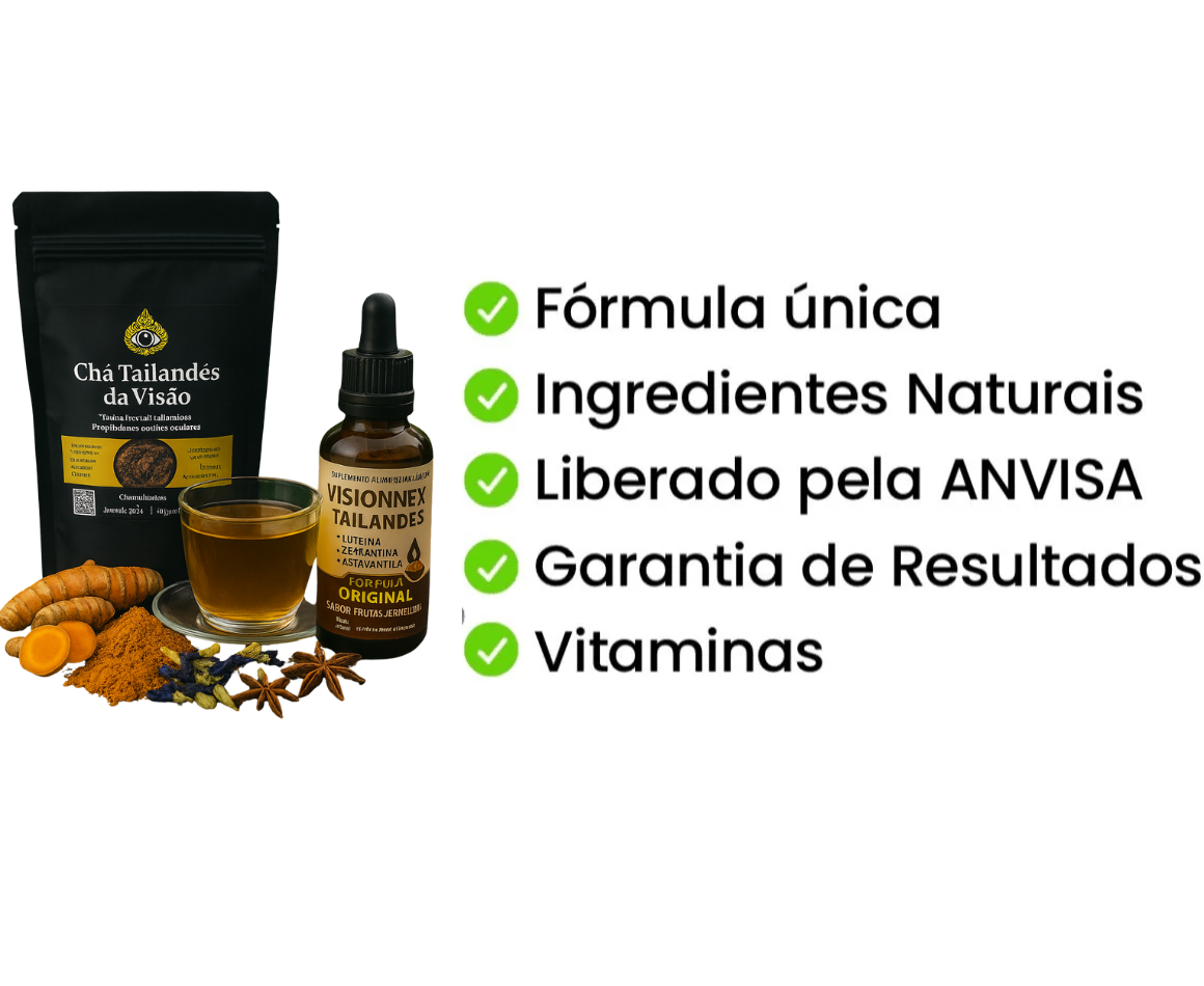 As Gotas da Visão Tailandesas, preparadas a partir do Chá Tailandês da Visão, são a escolha ideal para cuidar da saúde dos seus olhos de forma natural e eficaz. Essa fórmula exclusiva é resultado de mais de uma década de pesquisa e desenvolvimento, com eficácia e segurança comprovadas. Invista em um produto de qualidade e diga adeus aos problemas de visão. Com as Gotas da Visão Tailandesas, você terá a tranquilidade de estar cuidando bem dos seus olhos — sem precisar gastar fortunas em tratamentos caros e arriscados.